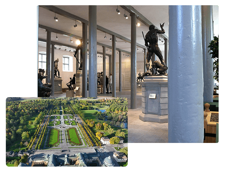 I barockdelen strosar du mellan bronsstatyer och strikt klippta häckar som liknar ett grönt konstverk. Denna del av parken skapades under 1600-talet med inspiration från franska slottsträdgårdar, där ordning och symmetri styr upplevelsen. Skulpturerna som pryder gångarna är kopior av konstnären Adriaen de Vries verk som fördes till Sverige som krigsbyten under 1600-talet. Om du är nyfiken på att se originalverken finns de samlade på Museum de Vries som ligger i närheten och som håller öppet vid förbokade visningar.